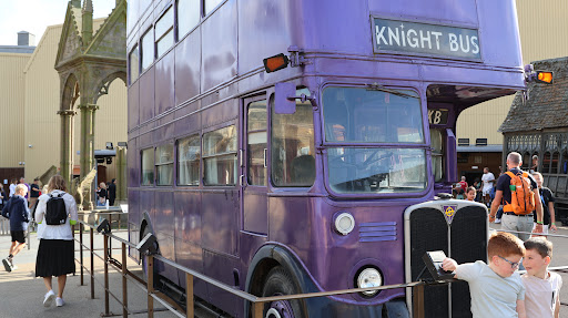 Read more"Con un grido, rotolò sul marciapiedi, appena in tempo. Un attimo dopo, un gigantesco paio di ruote sovrastate da due enormi fanali frenava bruscamente a pochi centimetri da lui. Come Harry poté constatare, il tutto apparteneva a un autobus a tre piani di un viola intenso, apparso dal nulla. Le lettere d'oro sul parabrezza dicevano: Il Nottetempo" (Harry Potter e il prigioniero di Azkaban, Capitolo 3, Il Nottetempo). Il mezzo di trasporto più pazzo e divertente della saga è posizionato in un'area esterna, inserita a circa 2/3 del percorso degli studi. È permesso salire al piano inferiore dell'autobus, nello spazio vicino al conducente e alla prima...