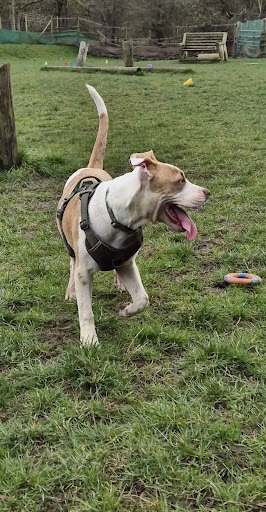 Oh, my days, we have found an absolute gem of a place! I'm gobsmacked that we've only just found it considering how long we've owned dogs. We've recently adopted a new pup, and a kind lady told me about this dog field whilst I was walking in my local park in AOM. It sounded great, so I googled it when I got home. I immediately booked onto their large puppy dog meet, large breed dog meet, and staffie dog meet, too. £10 a session for 50 minutes. Travelling from AOM to the location in Urmston was super quick and easy. You can also walk to the field down the Mersey route, which we might try the next visit. The routes final stretch by car takes you down a short dirt road past stables, and you can't miss the dog field as there is great signage. The car park is adequate, and we squeezed in on the end of a row. (At the end of our session, it was much busier, and cars were parked all over, I'm unsure whether there is an overflow area) There is a little drinks truck cafe, I think, called the dog house, on site. It's great to be able to warm up with a nice brew while waiting or while the dogs play. We were shown where to go to access the field for our session by a lovely lady and 2 blokes. They are all so friendly and welcoming. As it was our first time, we were given a quick brief, which I found very reassuring. Sessions are kept to a specific size for safety and comfort. The field is absolutely fantastic, we were so impressed with it. It has loads of toys spread around, a water area, an undercover area if raining, ramps, moving ramps, a tunnel, and tons of space for the dogs. The gate was manned by one of the men, so it remained secure at all times, and the perimeter fully fenced with no routes to escape. I'm not ashamed to say i genuinely welled up seeing all the puppies arriving and how happy my little one was to find some friends to play with. It was just utterly heartwarming watching such beautiful babies have loads of freedom and fun. Owners stay in the field and are responsible for their dog. You must clean up all dog mess, and if you forget your bags, there are some available on the fence. The field was understandably muddy due to the weather we've had, and it's frequent use. Wear suitable clothing and footwear. We absolutely recommend giving this field a try if you haven't. It's over an acre of space and can be booked for the socialising sessions or privately. I'm so looking forward to the next...
