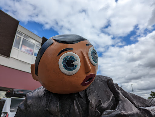 Read moreFrank Sidebottom ...a mancunian legend his creator Chris Sievey was a talented but largely misunderstood musician who found success with Frank ..the statue stands next to the local costa coffee and not far away from the famous Timperley post office ..famous for its two post boxes one for your left hand one for your right hand ..a joke that makes me howl with laughter Anyway fir any fan its worth a visit ! Its a thumbs up from me .. and a thumbs...