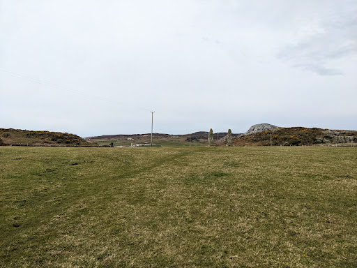 Read moreThese two Bronze Age standing stones have an uncertain past but it is thought that they may have been part of a larger stone circle and it is said that a grave containing bones and arrowheads was found between the stones but no concrete evidence exists of this. They may also have been linked to the nearby Plas Meilw settlement and are sometimes referred to as The Plas Meilw stones. They face perfectly North and South, pointing in the one direction to Holyhead mountain and to Yr Wyddfa (Snowdon) in the other. It is more than probable that this was purposeful. If you are interested in ancient history then these stones are very noteworthy and the view from the stones on a clear day is very impressive. The stones are easily found by car, and there is parking space at the kissing gate and signpost for two cars. The 60 metre or so walk to the stones is on dry grass with a worn pathway up a gentle slope so nothing strenuous here to put it mildly. An underrated...