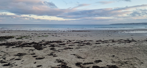 Sandy beach with some stones and shells. Lots of sea weed. Swimming depends on where in the tide cycle it is. Close to the shore there is a good drop and clear patches between the weed so you can get in easy. When it is quite far out it takes a long walk to get depth and all of it is through a slurry of weed and broken shell, so timing matters. Good for kayaking and oddly for this shore it sometimes has surf too.