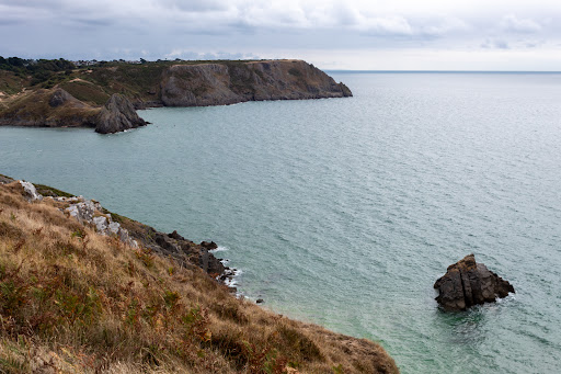 Visited on a wet Tuesday afternoon but the view alone was worth the effort. A long walk down to the beach so we stayed at the top. Beware of following Google maps or satnav if driving as you're taken down a narrow dead-end road with a final turn warning you not to follow the satnav. You can see the National Trust sign, but you have to walk to this road, either from the Camp-site car park slightly further on or, better still, turn right in Penmaen in front of the Church and park just after the cattle-grid, also National Trust land. Various paths down to the beach with glorious views on...