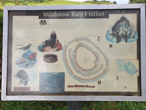 Just off a b-road is a small parking area at the foot of a grassy hill. The mound ahead is Warbstow Bury, a ancient man made hill with a long history. An info board gives some context and history for this historic site;