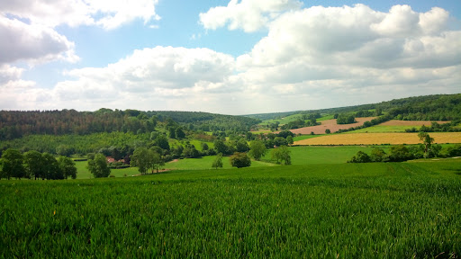 Rolling hills,woodland walks,picturesque cottages,narrow lanes,ancient footpaths across the countryside,old farm buildings and barnes, partridges/pheasant in the fields,Kites (birds of prey) soaring on the thermals,wild Deer grazing in the fields,just an amazing amount of wildlife,lovely old churches,quaint pubs,wonderful old villages where it would seem that time has stood still for a hundred years.