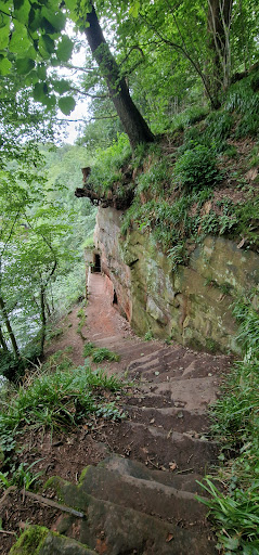Lovely Stroll here today. Parked at wetheral train station then went down 99 steps to the right of the station then once at the bottom head right again and follow the road around passing a row of lovely cottages, church yard (raised) and then some super modern houses, following them around to the river bank. Once on the river bank there are various paths that pretty much lead to the same place, the caves being 2 ,thirds of the way down and set at the lower level to the river (as the highest path must be 60 foot above the river with a wooded drop) and semi hidden if not paying proper attention. The woods are ambient and ancient. The drops in places are brutal. But paths are easy to stick too. I would not say this is suitable for prams or similar. And small children should be closely watched in places. Dogs would easily manage. The caves are always open, and are an insight into life then. The walls are lined with dates and names, the most are dated 1800,s. Along the way there are visitor boards with information about other sight seeing places along the way. This isn't a hard walk. But it is well...