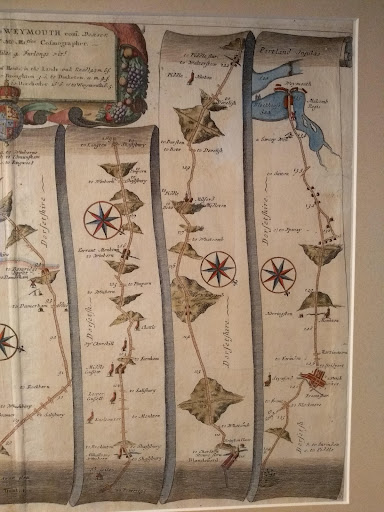 This is an excellent little provincial museum run by motivated and knowledgeable volunteers. Certainly worth a visit as it is a Tudor building of brick construction. I was reticent at visiting this place initially but that was completely unfounded. When most people only visit the beach in Weymouth and perhaps a few foody shops, Weymouth has an amazing history dating back to about the ad1300. Reputedly one of the ports that brought the black death to the UK. Which resulted in almost 50% of the whole of the UK population dying a miserable death. Weymouth is perhaps one of the few towns in the country where the wonderful council has decided to use one of the Tudor buildings dating back to about the 1600 as a public convenience! Well I suppose it does allow free admission to and time to contemplate! Finally below is a part of a picture of a map depicting the route from London to Weymouth in pictorial form.......