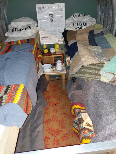 Here a different story. We learn of the Lowther family, responsible for the town's building, with the Baronets over the centuries, later Earls of Lonsdale. So we have speaking characters at their posts - slave captain at his wheel, wall-projected accounts of miners' dwellings, interactive contemporary costumes to try on all in appropriately darkened patina ship's hold light. And here I had to call close to my visit to return at a later date.