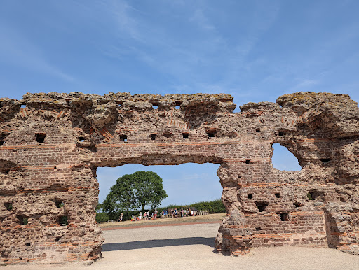 At its peak, Viriconium was the fourth largest Roman city in Britain with a population of around 15,000. The settlement began life as a fortress to garrison the Thracian Auxilia and Legio XIV Gemina on the frontline of Cambrian territories yet to be subjugated. It occupied a very strategic location above the ford across the River Severn, forcing the ancient Watling Street from Dover to Chester through the fort. It also had sightlines to over ten nearby tribal hillforts. During campaigns against the Picts in Scotland in 80CE, another legion occupied the fort but left to garrison Chester. The settlement became civilian and grew steadily over the next fifty years, particularly during the reign of Emperor Hadrian. Only a small portion of the city is uncovered today, centering around the public baths. Central to Roman life, these thermae were large and ornate. Remains of the barrel vaulted ceiling can be seen in the brickwork of the largest remaining section of wall. After the end of Roman rule in Britain in 410, the cornovii tribe split into what would become modern Powys and Shropshire. This divide was instrumental in Viriconium's decline. Life in Viriconium continued until the 5th century, but the steady decline of the settlement led to an initial rebuilding in wood and then abandonment altogether in the late 7th century. The fabric of this Roman city can be seen in many of the surrounding stone buildings, particularly St Andrew's Church in Wroxeter. The site is run by English Heritage. There is a car park and shop, a small museum as well as a modern reconstruction of a Roman villa across from the site, above the location...