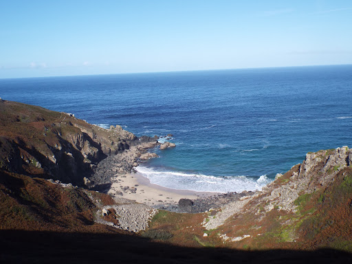 Beautiful secluded cove that can be quite sheltered depending on wind direction its not busy but thats because it is quite a scramble to get down to and can be quite dangerous...