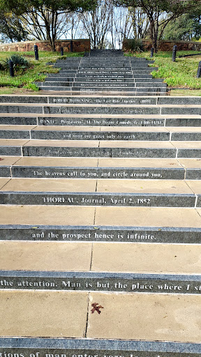 There are two sets of stairs leading up to different elevations of the park which are inscribed with beautiful "celestial" prose and poetry by Emily Dickerson, Dante, Kahlil Gibran, and many more. The youngest quote is from 1932, and there are all great to read and contemplate.