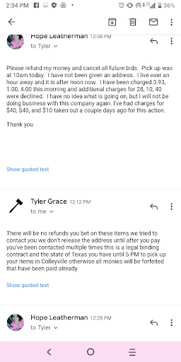 Read moreLet me start with with some key information related to my background and demographics in order to provide credibility of this review. I am a woman in my early 50’s who decided to take a break from practicing law in order to focus on spending more time with her family. As I have gotten older, I became less concerned with my role and responsibilities as partner of my firm and more concerned with being able to have meaningful relationships with my loved ones. I had no regrets on my decision on retiring from my career at law, but after my interaction with this auction house I do have one regret. I regret that I am not still an active practicing attorney in order to rectify the long laundry list of injustices conducted at this auction house. Trust me, if I still was an attorney, the doors of this place would be closed by the end of next week permanently. If I could give this business a -100 star rating I would. I have dealt with over hundreds of auction houses in the last decade and I overall have had relatively little issues. The practices at this auction house make my stomach churn. My initial concerns stemmed from the lack of communication from this auction house on simple yet essential details such as an appropriate payment method for a ticket with a 5 figure dollar amount. Even something as simple as the correct location to collect these items was unclear because the auction house has 2 completely different addresses listed on current and past email signatures, invoices, and online sources. However, those things were not nearly as alarming as the other ethically concerning things I had experienced and/or observed. This place is completely reliant on the hard work of two underaged Hispanic children who are constantly asked to physically pull lot items from the back and then are asked to run out to customers cars to deliver said items while checking that all the items are present. Oh, and those poor kids do not even have a moving cart to help, or even a box to hold the items in. They are carrying these items out by hand one-by-one without even another second check from an adult on whether the correct items were pulled. The only other employees that worked at this auction house were 2 adult Hispanic women who sat down in the AC behind a desk to collect funds. And the only other thing I even saw the adult employees do besides essentially scamming customers with item misrepresentation, false advertising, and quite possibly tax evasion was verbally abuse the only 2 hardworking employees there who were probably a quarter of their own age. The adult employees refused to take any accountability for any wrongdoings and completely deferred the blame onto the helpless children who were asked to perform well beyond their capabilities. This business lacks organization, customer service, basic moral conduct, and professionalism. I will end my review with this concluding statement: avoid this auction house for the entirety of your existence because the individuals who are reaping all the benefits are members of the lowest tier of society who have no moral conscience or responsibility to their customers, employees, or...