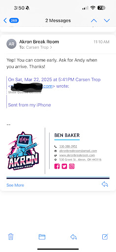 I also emailed the day before and asked if we can arrive 30 minutes early to set up. And I was told yes, (I attached the photo for proof.) When I expressed my frustration on the situation, Andy wasnât happy that we got there early to set up. The miscommunication is horrible.