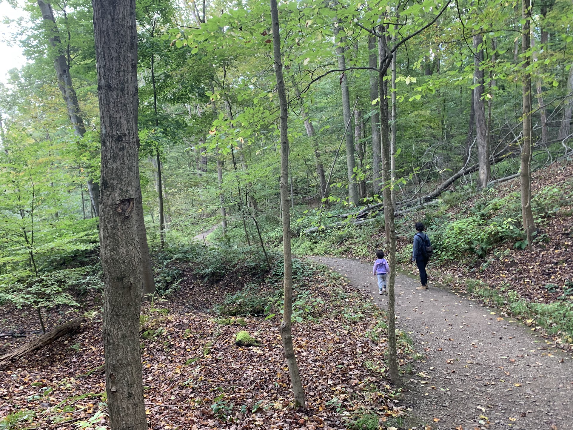 This is a review of the Mingo Trail and as a visitor, not a local - it's rated as hard on the map but I wouldn't call it more than moderate. It has some elevation change so there are plenty of ups and downs. If you start the loop at the north end near the Mingo Lodge, I went right on the loop and I think that was the best way to go. Then all your ups are on wider, gentler slopes, and all your downs are on the steeper paths coming back. Trail markers are EXCELLENT, I doubted one once and ended up on a Seiberling Nature Realm trail that wasn't indicated on the trail map at all. It's a 3ish mile loop, taking about an hour and a half to walk.