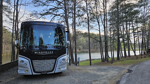 Read moreSpent a night here while traveling in our motorhome. The RV park has pretty views and is far enough from any major highway or town that you won't hear any traffic. Our electric/water only site on the lake was a fairly level, but tight back-in for our 30' motorhome. There was just enough room to park our toad in front. It had a steep downhill stairs to the lake from the site, where there was a firepit. Lots of trails for hiking, a beach and more. We had no cell service, and of course there's no wifi or cable service. The biggest downside was that the one RV dumpstation is located far in the back of the campground where it's a tight turnaround. Why there isn't one nearer the entrance is a mystery, as there appears to be plenty of room and...