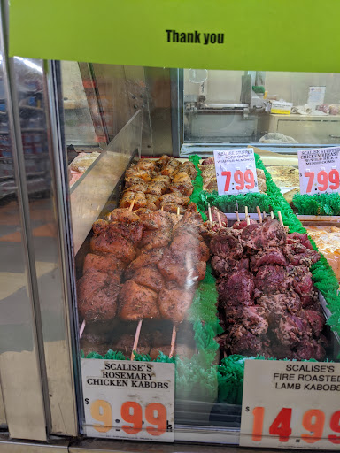 While I don't eat meat, Scalise's meats is inside and provides counter service. In the summer, freshly grilled meats are available cooked outside on the grill.