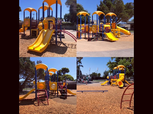 This park has so much packed in! Itās next to a school so when school isnāt in session the gate is sometimes opened and thereās access to the blacktop including blacktop games and basketball hoops. There are four baseball/softball diamonds, tennis courts, a ping pong table, shuffle board, nice bathrooms (with changing table), picnic tables, and mini stage plus the awesome play area. The play area is broken into two sections- a large structure play area and a small structure play area. The large area has the EXPANSIVE structure a long wobbling balance beam, a swing set with standard only swings (long chains for high flying). The structure has four different sections connected by monkey bars, bridges or tunnels. There are three slides (a short, a spiral and a tube), steps, ladders, activities, monkey rings, monkey bars, tunnels, bridges, sliding pole, gymnastics bar, step climbing wall, and look out bubbles. Thereās so much⦠at times it felt like too much if thatās even a thing š The smaller area is somewhat gated (not all the way. Only a few openings) and it is very spread out. There a small structure with three slides (short, double, and tube), steps, ladders, tube tunnel, look out bubbles and activities. In this play area thereās also a balance beam, an arch, a bucket swing set, a sitting hut perfect for a quiet break and ā¦. My favorite part⦠a dragon feature that appears to be swimming in the ground and then its head pokes out of the sand box š my sisu loving kid was thrilled (also doubles as a climbing feature). Near the sand box is a wonderful covered sitting area with picnic benches. Something Ive noticed at this and other Alameda parks, is a sign near the playgrounds saying āfood free areaā explaining that some playground friends have food allergies and itās important everyone is safe. Such an awesome idea. Way to go Alameda Parks @playarpd šš¼šš¼ Street parking on Otis Dr, High St, Calhoun St...