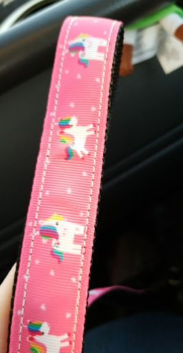We stumbled upon this lovely shop by chance next to Pizza Hut on Saturday and oh my goodness are we glad that we did. The owners were fantastic as was their beautiful dog. We brought out boxer with us and were greeted enthusiastically and felt very welcome. It is important to my husband and I to buy local and support local artists and this is one of the only places I have found Alaska made dog collars. We have been holding out on purchasing our dog's permanent collar for a month now as we were considering special ordering a leather collar from a leather store in town, but when we saw the Alaska made collars we knew that we had to choose one. We purchased a BEAUTIFUL collar for our dog that is absolutely stunning. It complements his coat beautifully and it suits him so well. It was meant to be, I'm certain! It is wonderful to know that this stunning hand-made collar is one of a kind and my boy is so thrilled.