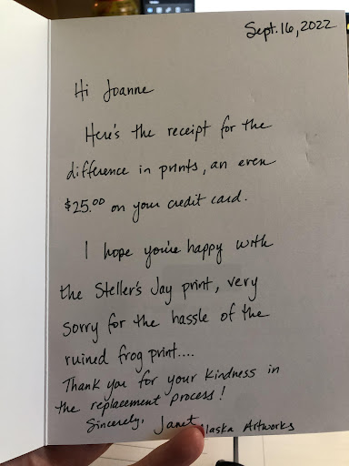 Read moreMy wife and I love to buy local art as we travel. We wandered around Skagway and found this shop. It was a little more bare bones than the other art shops around but has plenty of character. I think it was Janet that was working helped us understand the local styles but didn't pressure us into buying. We bought two prints, one had to be shipped all the way back to NC (to big for the plane ride home). It just arrived today in perfect condition. All art comes with the bio of the local artist. Exactly what we were...