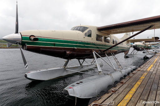 Once everyone attending the tour was loaded, we were driven to the marina where the planes were docked. They presented a safety video and then directed us down a ramp onto the dock where the plane was waiting. Our pilot helped us onto the plane, checked to make sure everyone was properly buckled in and showed us how to use the headsets. He started the plane, taxied into open water, and then we took off.