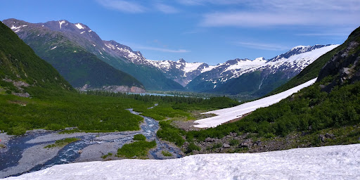 Read moreSuper easy flat, gravel trail out right onto the glacier. It's only about 1.5 miles out and back and you can walk right on the glacier. There is also a running creek and views are gorgeous. It's one of the few easy hikes right up to a glacier in Alaska and is only about an hour from Anchorage and 20 minutes from Whittier, which I recommend checking out after the hike at Byron Glacier for some hot cocoa or coffee and a snack at one of the waterfront restaurants. Check hours and openings of restaurants before as they change depending on the season. Tunnel into Whittier lets you in on the half hour and cost is $15 for a car. Leaving Whittier is...