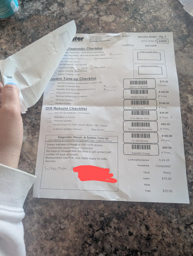 We are BEYOND disappointed with the serviceâor complete lack of itâwe received. My partner brought in his brand new 2025 all-in-one touchscreen work computer with a cracked screen. We were told theyâd provide a quote and get the part ordered. A day or two later, they said it would take two weeks and cost around $1,100. After thinking it over, we went in to pick it up, spoke to an employee, and agreed to move forward with the repair. He said âno problem,â theyâd order the part, and weâd get a call when it arrived.