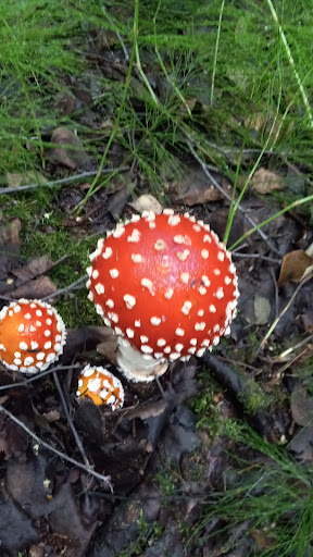 On the left you will find many trails in the woods where alot of moose are. This is where you will find the mushrooms in my photos.