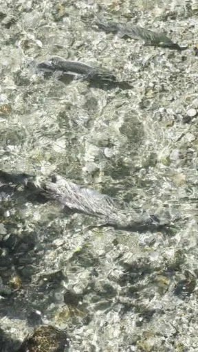 Visiting Fish Creek Wildlife Observatory was an unforgettable experience. Even though it was a blazing hot day—over 30°C—the forest and waterways still felt alive with activity. While it was too warm for the bears to make an appearance, the real show was happening in the water. The streams were absolutely teeming with salmon, all swimming upstream with incredible determination to spawn. Watching them leap, dart, and gather in the currents was both mesmerizing and humbling.