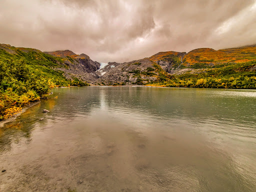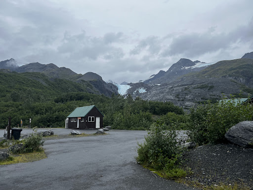 Read moreWe got here pretty late. We were the only car in the parking lot. It was a rainy cold day. It's a nice stop to get out and stretch along the highway. There is a 5 dollar fee to park. There is a short loop trail down to the lake with a good view of the glacier. The trail is paved and easy to walk. There are many signs explaining the area and the glacier. A few restrooms available to use which were clean and...