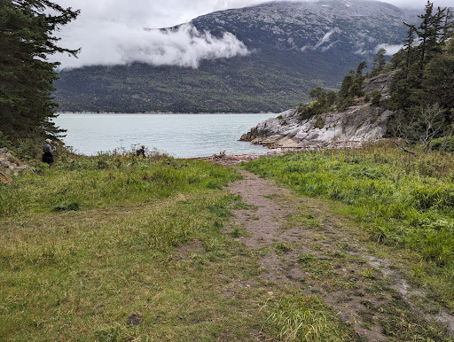 Trails are very well done, with lots of signs and interpretative boards. Thanks to the land and water conservation fund. The skies were clear the day I went in August but the forested trails kept us cool. Along the trail, thereās lots of mushrooms, berries, devilās claw, moss, lichen, red squirrels and birds singing. Beautiful view of the majestic mountains and the Chilkoot inlet.