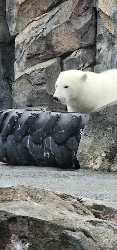 It was cold nice to see Amur the tiger roaring and the brown bear checking out things to eat. The sealion and the otters were very playful. The snow lepards and the wolfs were just laying around. The caribou, moose, and yak were enjoying some greens. The eagle let out some sounds. The ravens were face to face looking at each other. The polar bear was wondering around the back of his enclosure. Otherwise, think the children all...
