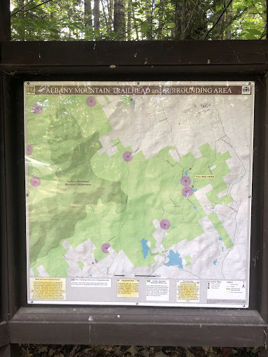 The trail had some inclines that may be considered challenging for some. Rocks, roots, stumps, and mud. Little creeks. It is about 1.5 miles up on Crocker pond road trail, and then about half a mile up to the peak (Albany mountain trail.) I believe to actually get to the awesome overlook, it is a little further than the .5 mile. Altogether is is about 4-5 miles or so, in and back.