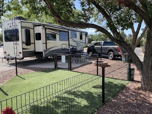 That night was terrifying. We were told by the office to "use extra stakes and secure our tent poles with duct tape or go get a hotel" and "welcome to albuquerque" all in the same sentence by a young arrogant kid. Our neighbors purchased a tarp and rope and we used our very expesive rain fly to block wind and moved both of our tents into the pergola. Although extra money was spent, both the rain fly and tarp were ripped, we got scared for our children and "slept" in our car. But let there be no mistake, 45 mph wind, no way compared to the highway traffic for the remainder of our stay. They simply need to move the tent sites and build fences around each site. You are basically stuck in the center of a gravel filled roundabout, completely exposed to all weather other than the roof on the pergola, which I might add, that they tried to kick us out of until a very nice lady made the call to let us stay in. She also came by to make sure we were okay. They need to give people like her a raise and fire that punk kid with the...