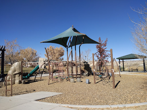 Peaceful, and tucked away in little hills. Double seating benches line the pathways, and includes an interesting set of facilities in the playground labeled from 3 to 12. Plenty of trimmed grass spots, shaded or sunny, to picnic on or spend the afternoon reading. The only thing that stops this place, for me, to be a five star is the medium low sounds of traffic coming from the main street, which i believe will be relieved as the trees nearest to the arroyo grow in tbe...