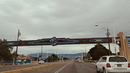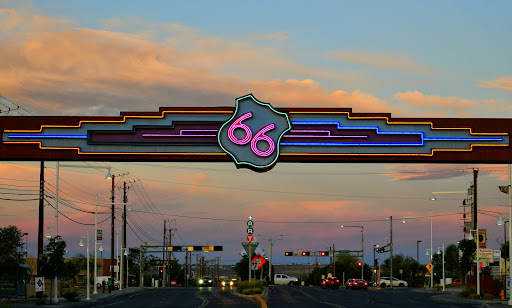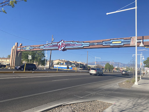 This arch across Central Ave.'s four lanes at 64th St. NW was designed in 2001 by Robert Randazzo of Absolutely Neon, Inc. of Albuquerque.