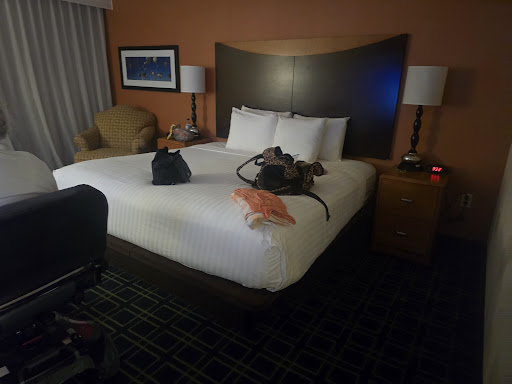 Read moreThe front desk service is terrible. When I was checking in, I had trouble recalling my vehicle's license plate number, which I needed to provide on the check-in form, so while I was looking that info up on my cell phone, one of the two women behind the front desk, the one helping me check in, took my credit card to swipe it for the security deposit. The other lady working the front desk was welcoming a couple of White guests very kindly, asking them where they were from, and stuff like that. When she saw that I was having trouble finding my vehicle's license plate information and that I wasn't completing the signing for the security charge, she yelled at me "YOU NEED TO TAKE CARE OF THAT OR WE WILL HAVE TO START IT ALL OVER AGAIN" in a very rude manner. The contrast between the way she was treating the White guests she was checking in and the way she screamed at me was very obvious. I wanted to tell her what her problem was but I was extremely tired and all I wanted was to get into my room. When I came over to the front desk to check out (be aware if they give you a room on the east side of this hotel, it will be a very long walk to the front desk, or you will have to get in your car and drive from your room to the front desk), nobody was there. I waited a couple of minutes, then rang the bell on the counter. Still nobody. I waited another 2 minutes, then a well-dressed older White woman with short hair appeared from behind a door, she didn't even acknowledge me, she came into the front desk area looking down, as if she was looking for something under the front desk counter. I said, very politely "good morning", she still wouldn't look at me and she did not reply to my greeting. While still looking for something under the counter, she said "what do you need?", I said that I was checking out, she was still not looking at me, still looking under the counter, she did not take the room key cards that I was giving her, I put the key cards on the counter, and she said, still not looking at me "I will let them know". I turned around and left feeling confused as to why she had been so rude and behaved so bizarrely, and why she had said "I will let them know", as if she didn't work for the hotel. Both interactions with the front desk staff, upon check in and while checking out, were very unpleasant, otherwise I would have given the hotel 3/5 stars because, in addition to the swimming pool and the gym not being open, none of the elevators in the building were working, and the "breakfast" is just apples, oranges, very small muffins, and coffee or hot water for tea. They would be better off not serving that type of "breakfast". Yes, there are signs everywhere that read that the elevators, the swimming pool, and the gym are closed "for renovations" or something like that, but the fact that they are not offering those services should be reflected in their room rates. The rooms are ok, they're clean and well-kept, but the building is very old, and despite rooms being remodeled and refurbished, the whole feeling of the hotel is that it has seen much better days. Also, the bath tub in the bathroom was clogged, the toilet paper holder was broken, the entrance door got stuck against the door frame every time I opened or closed it, I had to pull it real hard to open it, and slam it hard to close it so it made a lot of noise, and while the room I got with 2 king size beds was large, the bathroom itself is tiny and very uncomfortable. Location is good, but that and the rooms themselves are the only things I can rate as "good" (not "very good" or...