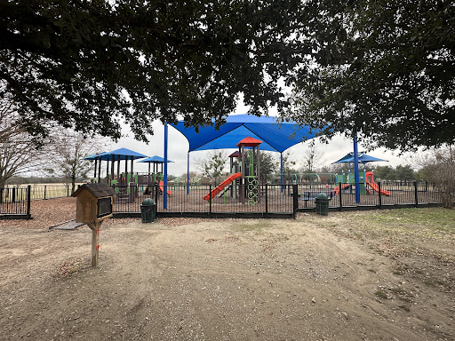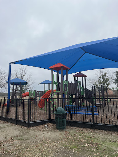 Newly renovated and all new equipment completely fenced in. 3 different playsets (2-5yo, 5-12yo, & 8-12yo). Big swings, toddler swings, one chair swing, and one tire swing. Covered area with tables for picnics/parties. Also, a little library for local book share. Four stars overall because there's no bathroom on site. But everything else is...