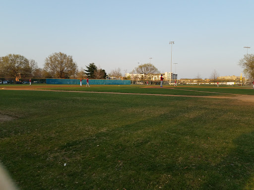 Friendly place, but poorly maintained (so, play at your own risk). Public bathroom for the baseball and soccer fields are available 24/7 year-round; a huge advantage over nearby Shirlington dog park in Arlington. The City has put off much needed renovation and nearly all maintenance, waiting until Pulte Homes puts the finishing touches on a nearby dog park that was required under their development permit for condos across the street. Now more than two years overdue, the consequences for Simpson dog park are showing. Since Simpson dog park is built on top of debris from the collapsed Monroe Ave bridge, over-use of the dog park has killed all if the grass that held a protective layer of dirt in place. Wet weather turns the park into a muddy cesspool. The debris is increasingly exposed and increasingly becoming a hazard to dogs in the park. The picture is of a piece of metal debris that my dog got caught between her toes recently. Understandably, fewer and fewer people use the park. Once a jewell in Alexandria's crown, this dog park is best avoided nowadays. ... unless there's nowhere else to go. (Actually, there isn't. Just brace yourself before you come and plan to bathe the dog upon...