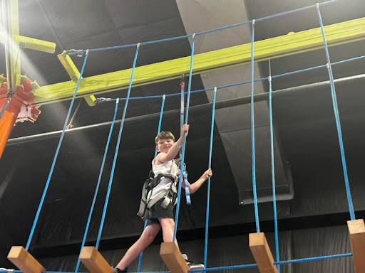 Once Braxton saw his friend do some of the rock climbing and zip lining, he was interested in trying it. However, he was very nervous. I could see his legs shaking, his mouth quivering, and the look in his eyes once he got to the top of the obstacle course.