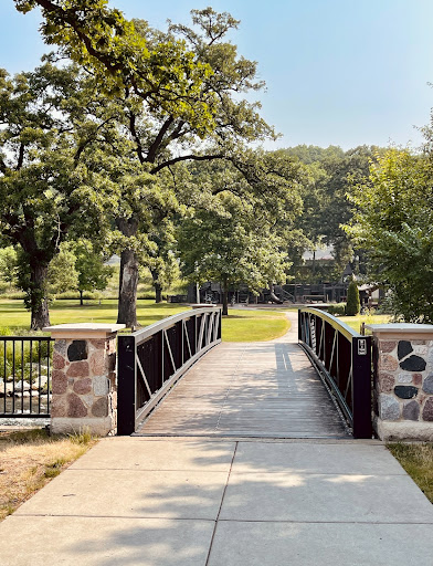 Beautiful creek and bridge by the parking lot. Kids had fun playing in it. Nice bike trails and our kids love the wooden playground “castle” structures.