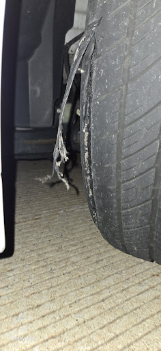 While driving on US-24, a semi-truck blew a tire and debris scattered across the roadway. I swerved to avoid it, but still struck some of the debris. The impact caused significant damage to my tires—but to my surprise and relief, they held air and carried me safely for 24 more miles until I was able to reach a store for replacement.