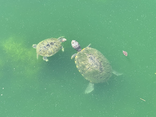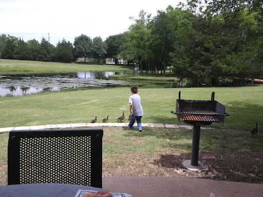 If you get bored with that it is a short walk over to the pond that was teeming with turtles that my daughter just loved. We counted 20 or so floating aroudn and there appears to be three different types we could identify (wish I took a picture of them). We cut up some carrot slices and fed them, which made her giddy. There is a nice covered patio with lots of chairs to sit and eat, while enjoying the atmosphere. This is honestly one of the best parks I have been to in Allen, and will...