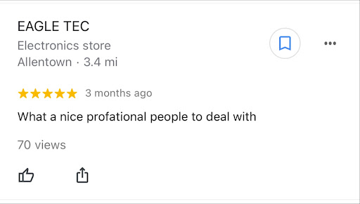 Read moreHands-down five stars !!!! This business and the store next-door with the most gorgeous clothing ladies you’ll have to check it out !!!!They truly have been a blessing to my life At a very difficult time that I’ve been recovering from a brain injury the thoughtfulness care & love for others is Is genuine and noticeable….🙏🏻They have shown integrity .Had my phone fixed here couple times always a great experience . With-bashing others similar places finding myself disappointed , feeling either scammed or unhappy about the amount of money spent . I’ve always had a great experience with eagle tech . I’ve had the opportunity to meet the owners wife who has a clothing store next-door my experience with her was amazing she has the most beautiful heart & beautiful clothing they are a blessing to Lehigh Valley...