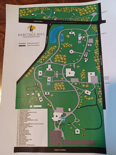 In an entire morning wandering here among the (some) original, (some) restored, and some replicated old historical buildings, all the buildings were closed. Understandable amid a pandemic. We could see in windows on a few buildings. At least they had the park open. Thank You! But, on the 40 acre site, which normally (non-covid) has volunteer re-enactor interpretors, there was one map sign and a total of 6 info signs. All these were at the Ft Howard site, we're one of the original buildings, dating from the 1830s, is the oldest standing military hospital in the country. A few other buildings had plaques identifying them, but no background information. In the downstairs of the guardhouse was a one room display room about the fort too. I believe that it would probably take one employee or volunteer only a week to create, print, laminate, and post some information signs around the park. It would add so much to the education, experience, and quite possibly donations! Oh yes, there was also a sign not to disturb the chickens and one small map posted on the bathroom door to the women's restroom. However, no one saw it because the other sign on the door was easy to read from a distance and...