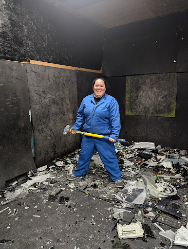 Each person gets one basket of either smashable appliances or glass bottles. Went with a group, which is great if you all don't mind sharing your baskets and can benefit from the variety. If you go solo, it might be worth springing the extra $15 so you can get both. (If you can only afford 1, do the appliances. They will help you fill your time more than the bottles.) Being able to choose your own music at a whim is great! Lots of our fun came from choosing individual vibes! If you rage room, wear covered shoes with thick soles!! Make sure to check the bottoms when you get home so you don't track glass in. I do wish this place had a means of accommodating that in-store more (tweezer station?? lol). Highly recommend wearing jeans pants and long sleeves for protection but if you forgot, don't worry, they will provide coveralls. (Modeled in the photo~) I was wearing jeans but wanted to be extra safe so I could fully enjoy the room. I believe they might even have earphones to help muffle sounds if you're sensitive to that. Very thoughtful! Friendly staff and atmosphere! We loved it!!! I want to take other...