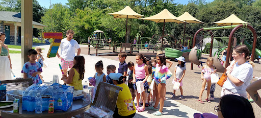 There is a small pavilion abutting the main playground with eight metal circular tables with attached chairs. There is a water play area towards the far end of the playground which was shut down (due to the pandemic, I presume). There are ample seating areas and good shade coverage. Ample paved parking available with clearly marked parking spots.