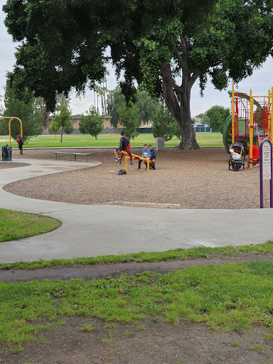 This is probably the most "peaceful" and/or "serene" parks in Anaheim, it has a variety of "work-out stations" you can add to a fun walk around a well paved 1/2 mile track, it's got a volleyball pit which people really use, a number of soccer ⚽️ fields i was concerned about ( but it seems players "do" rotate as to prevent damaging the grass...nice job !!) It's also got a baseball field in the back, but the game seems to be soccer...The parking area looks a bit rough, homeless go here to clean up, bringing their "stolen bikes" with them... I've noticed that private parties leave behind their trash 🗑 so maybe I will contact Parks & Recreation see if they can "add extra cans" to reduce this...it's a well lit zone that has no drama, perfect for meditation after a long or stressful day...no lake or ducks, no music theatre just relaxing & fun to see everyone...
