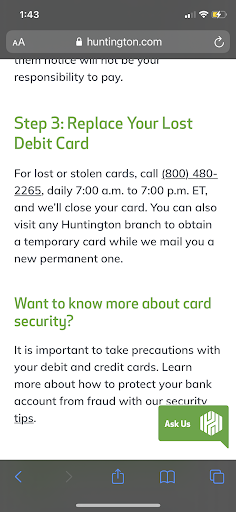 Awful bank for any small business Riddle me this what's the point of a bank if they don't even keep your money safe? Second riddle how can they let the same place hit up your account numerous times without redflagging it. Hmm guess only huntington. Third riddle how can you let a account go 29,000 over draft? Why they heck can't I overdraft my own account like that? Fourth why do you take so long to fix the problem knowing it's negatively effecting a small business should we just tell our clientele sorry we can't run today our bank Huntingdon failed to protect our money? I will protest and spread the word so other small businesses like mine will know this...