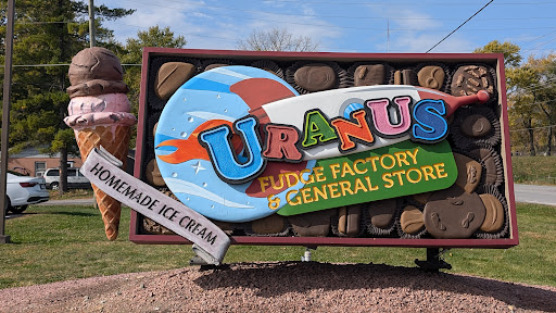 ย ย ย Read moreA Fantastically Funny and Fudge-Filled Trip to Uranus! A visit to the Uranus Fudge Factory in Indiana is an experience that will leave you with a smile on your face, a bag full of delicious fudge, and a collection of hilariously quirky souvenirs. From the moment you pull into the parking lot, it's clear this isn't your average candy store. The vibrant, kitschy decor and the abundance of pun-laden signs immediately set a playful and welcoming tone. Upon entering, we were greeted with a cheerful and enthusiastic "Welcome to Uranus!" by the staff, who were just as much a part of the fun as the store itself. Their friendly and engaging demeanor made the experience all the more enjoyable. It's evident they love what they do, and their energy is infectious. The fudge, of course, is the main event, and it does not disappoint. With a wide variety of flavors to choose from, there's a tempting treat for every palate. The staff are generous with samples, allowing you to try before you buy. We found the fudge to be rich, creamy, and utterly delicious. But Uranus is so much more than just a fudge shop. It's a destination packed with things to see and do. The store is a treasure trove of novelty gifts, hilarious t-shirts, and other unique merchandise that you won't find anywhere else. We spent a significant amount of time just Browse the aisles, laughing at the clever and often cheeky humor that permeates the entire establishment. For those with a love for the delightfully weird and wonderful, the Uranus Fudge Factory is a must-visit. Itโs a place that doesnโt take itself too seriously and is dedicated to providing a fun and memorable experience for all who venture through its doors. Whether you're a local or just passing through, a stop at Uranus is sure to be a highlight of your trip. We left with our sides hurting from laughter and a strong desire to return. We can't...