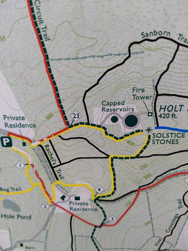 The highlights here are the Solstice Stones at the top of Ward Hill and a view of Boston and all the trees in between. If you follow the yellow markers, it is about 15 minutes from the parking lot to the top.