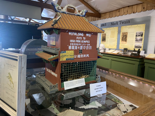 The most exciting collection, of course, is about the Frog Jump Jubilee in commemoration of the tall story retold by the world-famous writer. (Or it could be his invention. Who knows.) You may have watched the CBS documentary, read about it in national newspapers, or any number of online places. But seeing physical artifacts about this extremely local yet global sensation is always a thrill. Prominent on display are the cage that held and box that transported the Republic of China (Taiwan) entry to the event in the 50's.